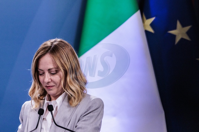 Giorgia Meloni and Kyriakos Mitsotakis during a statements to the press at the end of the Italy-Greece Intergovernmental Summit, Rome, Italy 12 May 2025, Credit:Francesco Fotia / Avalon