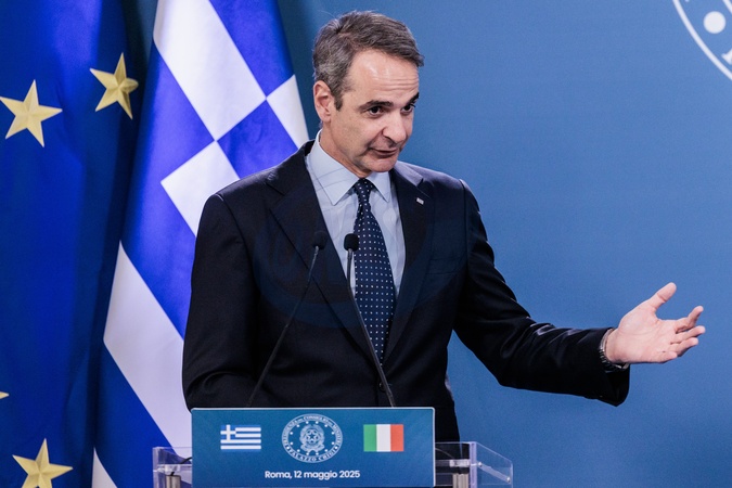 Giorgia Meloni and Kyriakos Mitsotakis during a statements to the press at the end of the Italy-Greece Intergovernmental Summit, Rome, Italy 12 May 2025, Credit:Francesco Fotia / Avalon