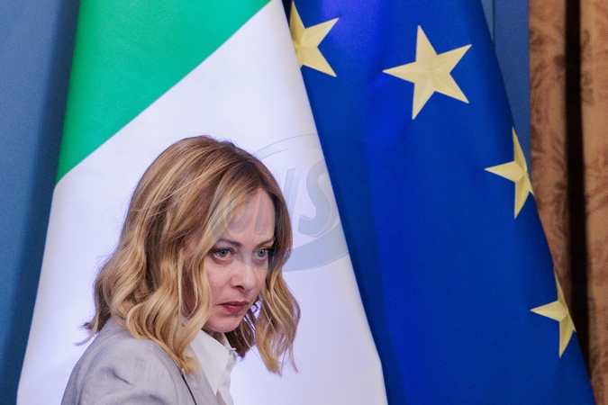 Giorgia Meloni and Kyriakos Mitsotakis during a statements to the press at the end of the Italy-Greece Intergovernmental Summit, Rome, Italy 12 May 2025, Credit:Francesco Fotia / Avalon