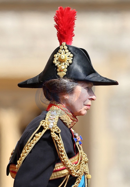 WINDSOR, ENGLAND - MAY 12: Anne, Princess Royal watches the presentation of the New Standards at Windsor Castle on May 12, 2025 in Windsor, England. The King, accompanied by The Princess Royal, will attend the Household Cavalry's New Standards Parade at Windsor Castle on Monday, 12th May. The Standards, deeply symbolic of the Squadrons' heritage and achievements, are held in the highest esteem., Credit:Chris Jackson / Avalon