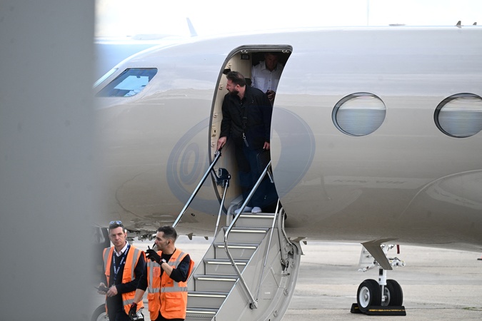 Arrivée sous très haute protection de Kim Kardashian à l'aéroport du Bourget la veille de son audition au procès de la rue tronchet des "Papys braqueurs" de Kim Kardashian à Paris le 12 mai 2025. Kim Kardashian arrives under very high security at Le Bourget airport the day before her hearing at the trial of the rue Tronchet of the "Grandpa robbers" of Kim Kardashian in Paris on May 12, 2025.