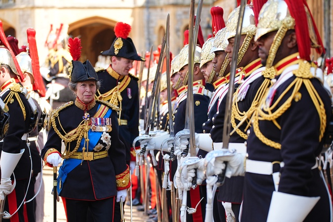 The Princess Royal, Colonel The Blues and Royals, attending the presentation of new standards to The Life Guards and the Blues and Royals at Windsor Castle, Berkshire., Credit:Aaron Chown / Avalon