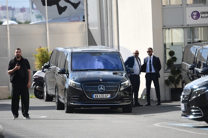 Arrivée sous très haute protection de Kim Kardashian à l'aéroport du Bourget la veille de son audition au procès de la rue tronchet des "Papys braqueurs" de Kim Kardashian à Paris