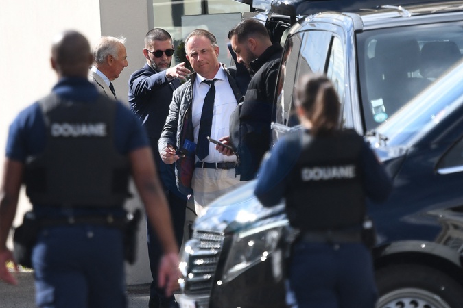 Arrivée sous très haute protection de Kim Kardashian à l'aéroport du Bourget la veille de son audition au procès de la rue tronchet des "Papys braqueurs" de Kim Kardashian à Paris le 12 mai 2025. Kim Kardashian arrives under very high security at Le Bourget airport the day before her hearing at the trial of the rue Tronchet of the "Grandpa robbers" of Kim Kardashian in Paris on May 12, 2025.