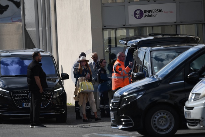 Arrivée sous très haute protection de Kim Kardashian à l'aéroport du Bourget la veille de son audition au procès de la rue tronchet des "Papys braqueurs" de Kim Kardashian à Paris