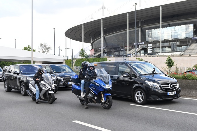 Arrivée sous très haute protection de Kim Kardashian à l'aéroport du Bourget la veille de son audition au procès de la rue tronchet des "Papys braqueurs" de Kim Kardashian à Paris