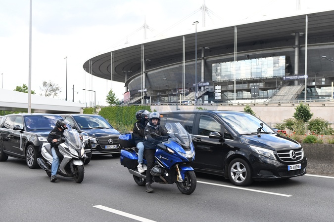 Arrivée sous très haute protection de Kim Kardashian à l'aéroport du Bourget la veille de son audition au procès de la rue tronchet des "Papys braqueurs" de Kim Kardashian à Paris