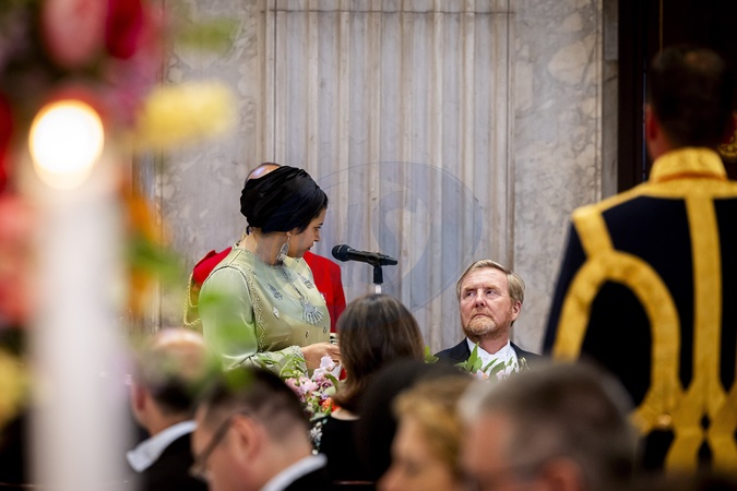 Amsterdam, The Netherlands, 2025-05-12 20:06:01AMSTERDAM, 12-05-2025, Royal Palace AmsterdamKing Willem-Alexander and Queen Máxima will receive the Diplomatic Corps for a gala dinner at the Royal Palace Amsterdam on Monday evening, 12 May. During the dinner, the King will give a short speech in which he will discuss the unifying role of diplomats in a troubled world. PHOTO: NLBeeld/POOL/Patrick van Katwijk, Credit:Avalon
