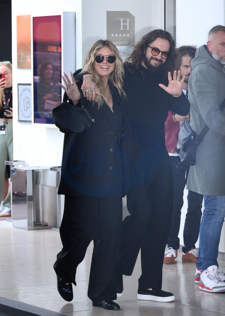 Heidi Klum et son mari Tom Kaulitz à leur arrivée à l'hôtel Martinez la veille de l'ouverture du 78ème Festival International du Film de Cannes, le 12 mai 2025. © Denis Guignebourg/Bestimage Celebrities arrive at the Martinez Hotel during the 78th Cannes International Film Festival