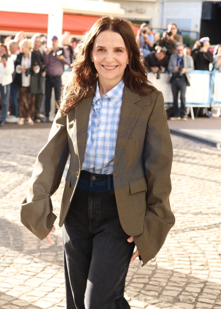 La Présidente du Jury Juliette Binoche à son arrivée à l'hotel Martinez la veille de l'ouverture du 78ème Festival International du Film de Cannes, le 12 mai 2025. © Denis Guignebourg/Bestimage Celebrities arrive at the Martinez Hotel during the 78th Cannes International Film Festival