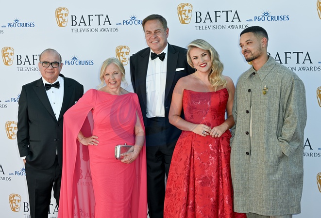 London, UK, 11 May 2025. (L-R) Touker Suleyman, Deborah Meaden, Peter Jones, Sara Davies and Stephen Bartlett arriving at the BAFTA Television Awards with P&O Cruises at the Royal Festival Hall, London, UK., Credit:Lee Floyd / Avalon