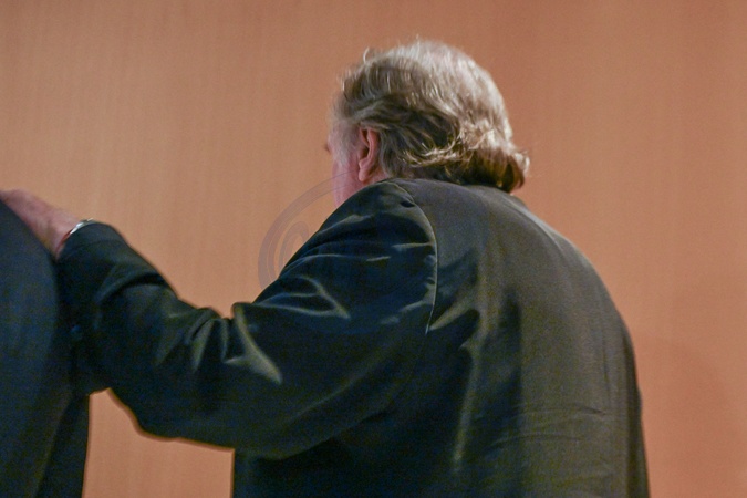 Gérard Depardieu arrive, avec son avocat Jérémie Assous, à l'ouverture de son procès pour agressions sexuelles sur deux femmes lors d'un tournage de film en 2021, au tribunal correctionnel de Paris