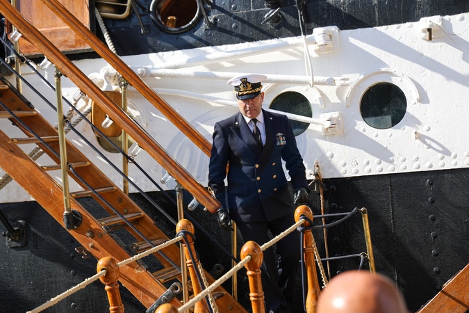 at the maritime station this morning the city authorities and school children welcomed the navy training ship Amerigo Vespucci, which stopped in Naples during the world tour that lasted two years, Naples, Italy 13 May 2025, Credit:Fabio Sasso / Avalon