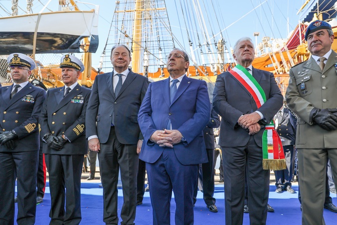 at the maritime station this morning the city authorities and school children welcomed the navy training ship Amerigo Vespucci, which stopped in Naples during the world tour that lasted two years, Naples, Italy 13 May 2025, Credit:Fabio Sasso / Avalon