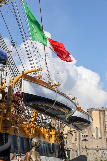 at the maritime station this morning the city authorities and school children welcomed the navy training ship Amerigo Vespucci, which stopped in Naples during the world tour that lasted two years, Naples, Italy 13 May 2025, Credit:Fabio Sasso / Avalon