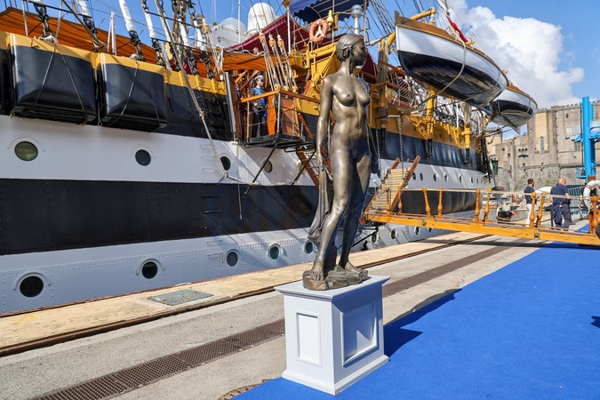 at the maritime station this morning the city authorities and school children welcomed the navy training ship Amerigo Vespucci, which stopped in Naples during the world tour that lasted two years, Naples, Italy 13 May 2025, Credit:Fabio Sasso / Avalon