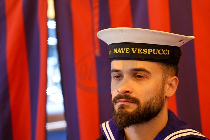 at the maritime station this morning the city authorities and school children welcomed the navy training ship Amerigo Vespucci, which stopped in Naples during the world tour that lasted two years, Naples, Italy 13 May 2025, Credit:Fabio Sasso / Avalon