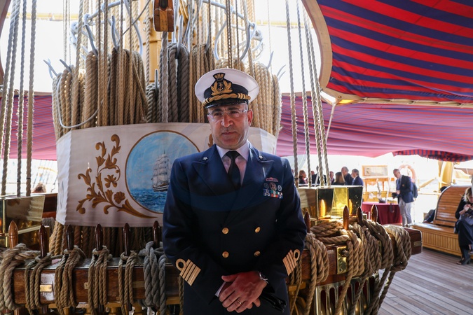 at the maritime station this morning the city authorities and school children welcomed the navy training ship Amerigo Vespucci, which stopped in Naples during the world tour that lasted two years, Naples, Italy 13 May 2025, Credit:Fabio Sasso / Avalon