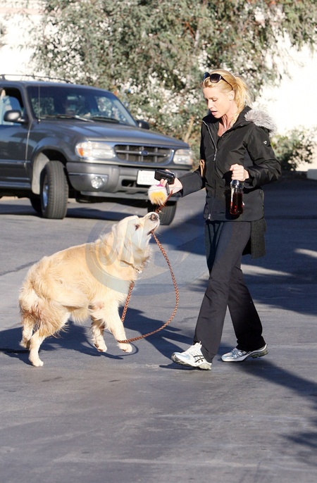Nicollette Sheridan z psem na spacerze, Calabasas