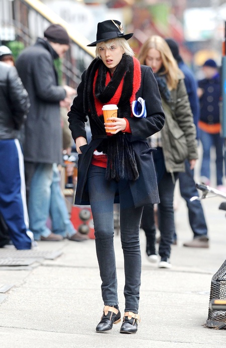 Agyness Deyn nosi czarno czerwony szalik Michaela Kors'a, Nowy Jork