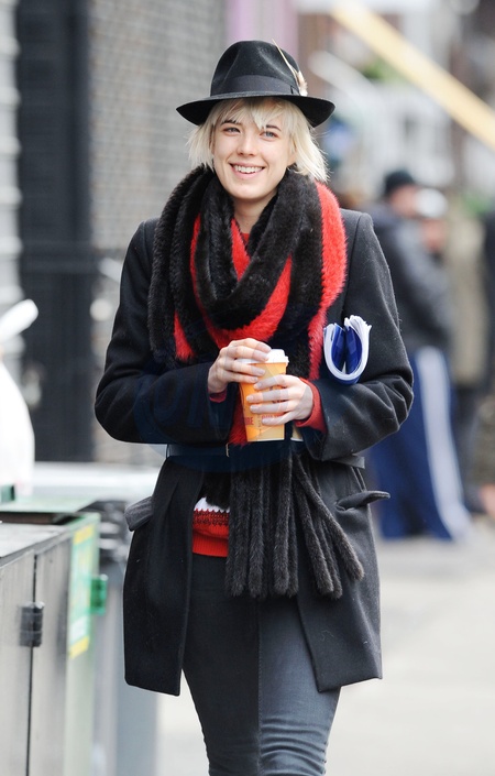 Agyness Deyn nosi czarno czerwony szalik Michaela Kors'a, Nowy Jork