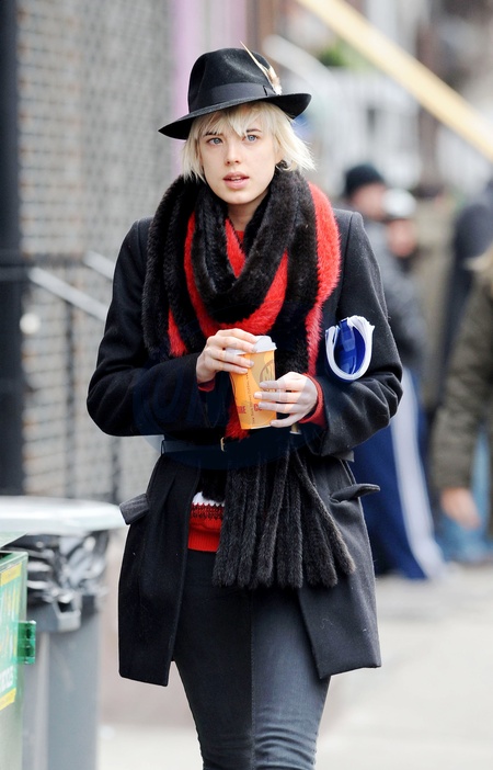 Agyness Deyn nosi czarno czerwony szalik Michaela Kors'a, Nowy Jork