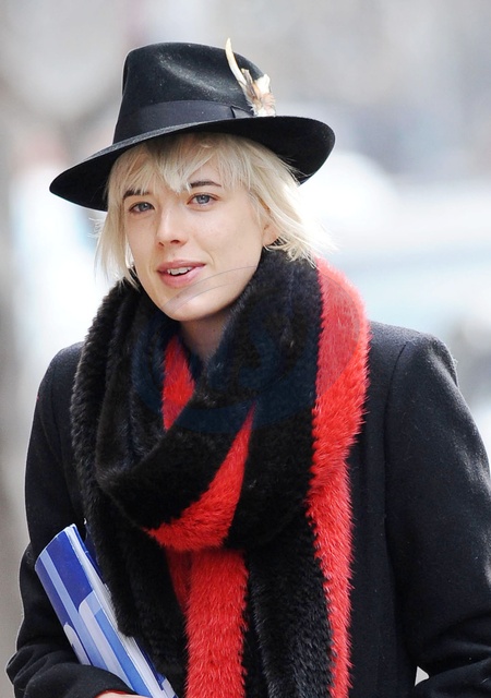 Agyness Deyn nosi czarno czerwony szalik Michaela Kors'a, Nowy Jork