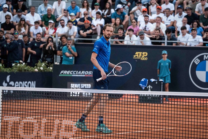 13/05/25 - Lorenzo Musetti, from Italy, against Daniil Medvedev, from Russia, during they round of 16 in Roma. © Tristan Lapierre / PsnewZ / Bestimage