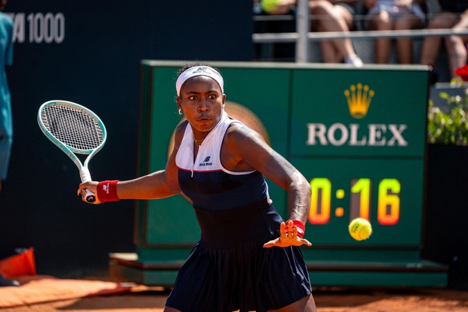 Coco Gauff, from USA, against Emma Raducanu, from Great Britain, during their round of 16 in Roma. © Tristan Lapierre / PsnewZ / Bestimage