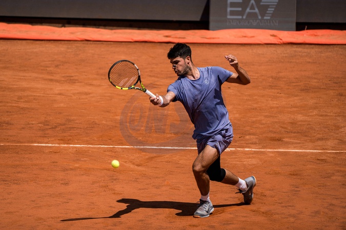 Carlos Alcaraz, from Spain, against Karen Khachanov, from Russia, during their round of 16 in Roma. © Tristan Lapierre / PsnewZ / Bestimage