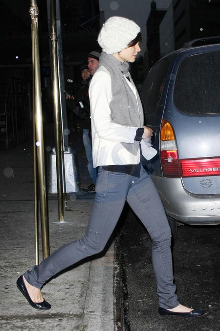 Katie Holmes w bialym berecie, Nowy Jork