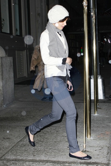 Katie Holmes w bialym berecie, Nowy Jork