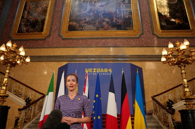 European Union High Representative for Foreign Affairs and Security Policy Kaja Kallas speaks to the media as she arrives for talks on Ukraine and the future of European security hosted by Britain's Foreign Secretary David Lammy at Lancaster House in London, Britain, May 12, 2025., Credit:Carlos Jasso / Avalon