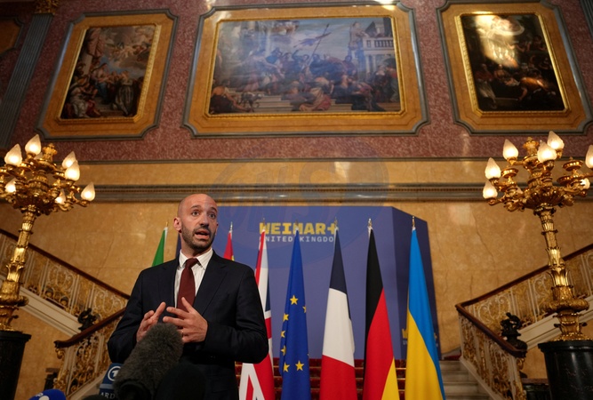French Junior Minister for Europe Benjamin Haddad speaks to the media as he arrives for talks on Ukraine and the future of European security hosted by Britain's Foreign Secretary David Lammy at Lancaster House in London, Britain, May 12, 2025., Credit:Carlos Jasso / Avalon