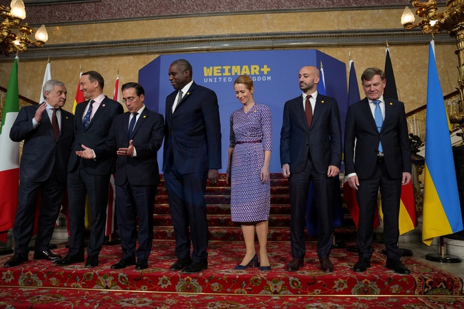 Italy's Foreign Minister Antonio Tajani, Poland's Foreign Minister Radoslaw Sikorski, Spain's Foreign Minister Jose Manuel Albares Bueno, British Foreign Secretary David Lammy, European Union High Representative for Foreign Affairs and Security Policy Kaja Kallas, French Junior Minister for Europe Benjamin Haddad, and Germany's Foreign Minister Johann Wadephul stand for a group, Credit:Carlos Jasso / Avalon