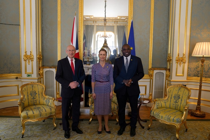 British Foreign Secretary David Lammy, British Defence Secretary John Healey, and European Union High Representative for Foreign Affairs and Security Policy Kaja Kallas pose for pictures, as Britain hosts talks on Ukraine and the future of European security at Lancaster House in London, Britain, May 12, 2025., Credit:Carlos Jasso / Avalon