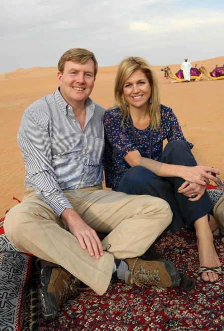 Ksiaze Willem Alexander i ksiezniczka Maxima zwiedzaja pustynie w Liwa, Abu Dhabi, Zjednczone Emiraty Arabskie