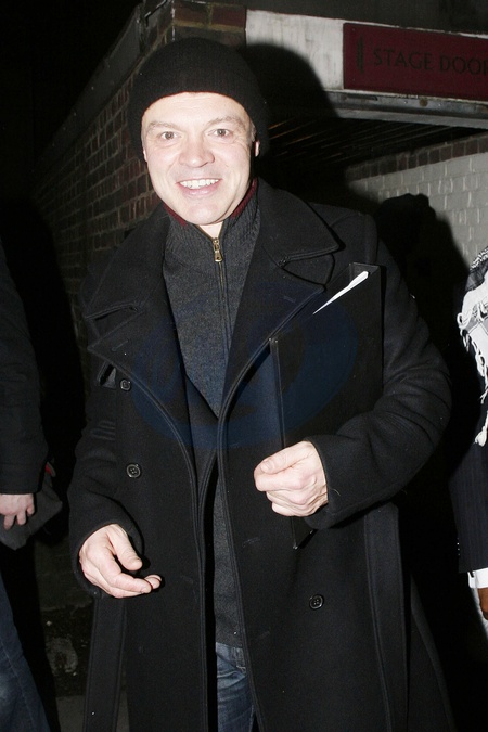 Graham Norton wychodzi z teatru The Playhouse w Londynie