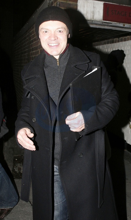 Graham Norton wychodzi z teatru The Playhouse w Londynie