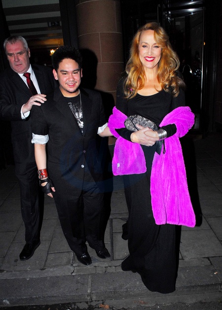 Jerry Hall wychodzi z restauracji Cipriani w Londynie