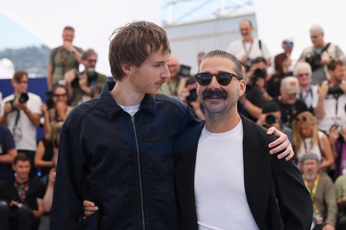 Leo Lewis O'Neil et Shia LaBeouf au photocall de Slauson Rec lors du 78ème Festival International du Film de Cannes, au Palais des Festivals à Cannes, France, le 18 mai 2025. © Jacovides-Moreau/Bestimage "Slauson Rec" photocall at the 78th annual Cannes Film Festival at Palais des Festivals in Cannes, France, on May 18, 2025.