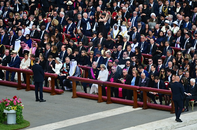 Le prince Albert II de Monaco et la princesse Charlène de Monaco, Grand-Duc Henri de Luxembourg avec femme Marie-Thérèse de Luxembourg, Le roi Felipe VI et la reine Letizia d'Espagne, Le roi Philippe et la reine Mathilde de Belgique, Ursula von der Leyen, Volodymyr Zelensky et sa femme Olena Zelenska, La princesse Victoria de Suède et guests assistent à la messe inaugurale du pape Léon XIV pour le début de son pontificat sur la place Saint-Pierre au Vatican à Rome, Italie, le 18 mai 2025. © Christian Liewig/Bestimage Royals attend the inaugural Mass of Pope Leo XIV for the start of his pontificate in St. Peter's Square at the Vatican in Rome, Italy, May 18, 2025. © Christian Liewig/Bestimage