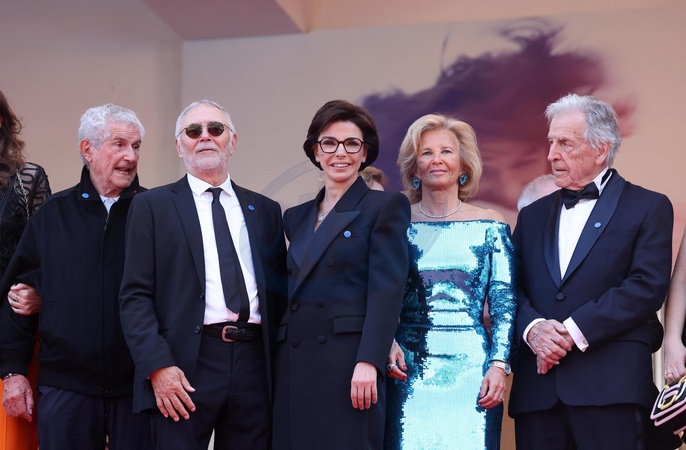 Claude Lelouch, Pierre Jolivet, Rachida Dati, ministre de la Culture, Iris Knobloch, Costa-Gavras - Montée des marches du film « The Phoenician Scheme » lors du 78ème Festival International du Film de Cannes, au Palais des Festivals à Cannes. Le 18 mai 2025 © Jacovides-Moreau / Bestimage Red carpet for the movie « The Phoenician Scheme » during the 78th Cannes International Film Festival at the Palais des Festivals in Cannes, France. On may 18th 2025