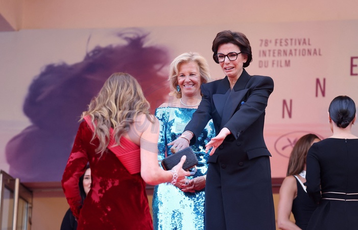 Iris Knobloch, Rachida Dati, ministre de la Culture, Carla Bruni sarkozy - Montée des marches du film « The Phoenician Scheme » lors du 78ème Festival International du Film de Cannes, au Palais des Festivals à Cannes. Le 18 mai 2025 © Jacovides-Moreau / Bestimage Red carpet for the movie « The Phoenician Scheme » during the 78th Cannes International Film Festival at the Palais des Festivals in Cannes, France. On may 18th 2025