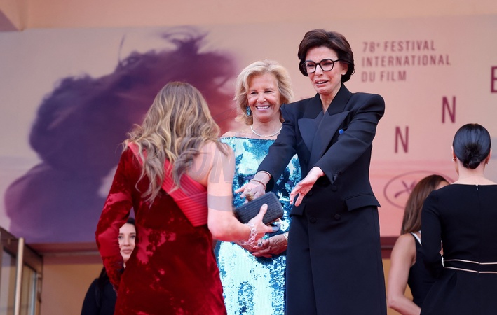 Iris Knobloch, Rachida Dati, ministre de la Culture, Carla Bruni sarkozy - Montée des marches du film « The Phoenician Scheme » lors du 78ème Festival International du Film de Cannes, au Palais des Festivals à Cannes. Le 18 mai 2025 © Jacovides-Moreau / Bestimage Red carpet for the movie « The Phoenician Scheme » during the 78th Cannes International Film Festival at the Palais des Festivals in Cannes, France. On may 18th 2025