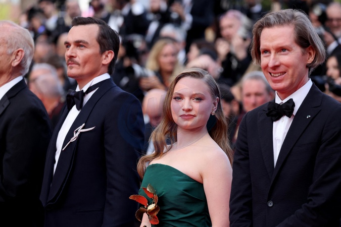 Rupert Friend, Mia Threapleton, Wes Anderson - Montée des marches du film « The Phoenician Scheme » lors du 78ème Festival International du Film de Cannes, au Palais des Festivals à Cannes. Le 18 mai 2025 © Jacovides-Moreau / Bestimage Red carpet for the movie « The Phoenician Scheme » during the 78th Cannes International Film Festival at the Palais des Festivals in Cannes, France. On may 18th 2025