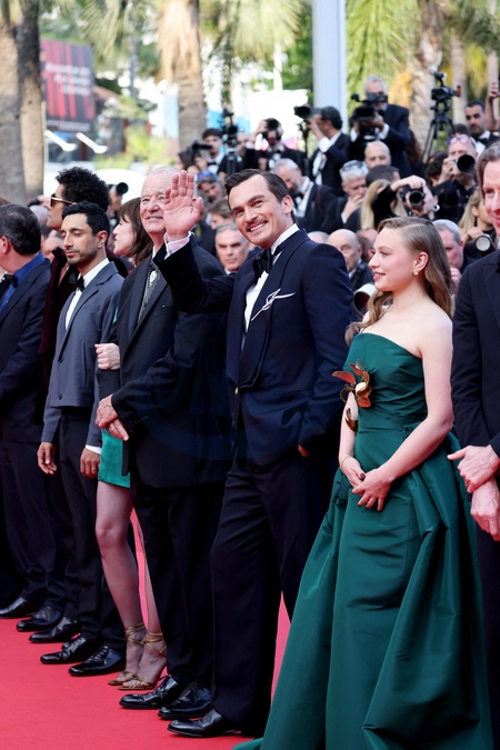 Bill Murray, Rupert Friend, Mia Threapleton - Montée des marches du film « The Phoenician Scheme » lors du 78ème Festival International du Film de Cannes, au Palais des Festivals à Cannes. Le 18 mai 2025 © Jacovides-Moreau / Bestimage Red carpet for the movie « The Phoenician Scheme » during the 78th Cannes International Film Festival at the Palais des Festivals in Cannes, France. On may 18th 2025