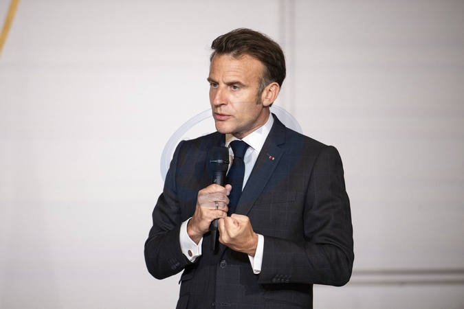 Prezydent Emmanuel Macron bierze udział w ceremonii wręczenia nagród „No to Harassment” w Pałacu Elizejskim w Paryżu.