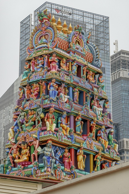 Singapore, Little India district is the main venue for public celebrations of important Hindu/Indian festivals such as Deepavali and Pongal. Pictured: The Sri Mariamman Temple is Singapore's oldest Hindu temple. It is an agamic temple, built in the Dravidian style. Located at 244 South Bridge Road, Credit:Fabio Mazzarella / Avalon