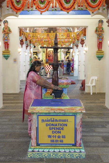 Singapore, Little India district is the main venue for public celebrations of important Hindu/Indian festivals such as Deepavali and Pongal. Pictured: The Sri Mariamman Temple is Singapore's oldest Hindu temple. It is an agamic temple, built in the Dravidian style. Located at 244 South Bridge Road, Credit:Fabio Mazzarella / Avalon